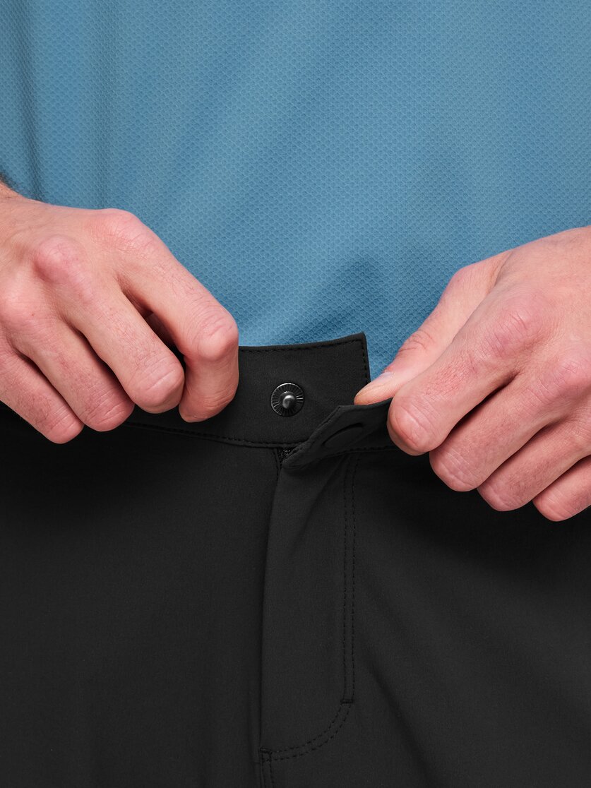 - Bund mit Druckknopf, Gürtelschlaufen und Schlitz