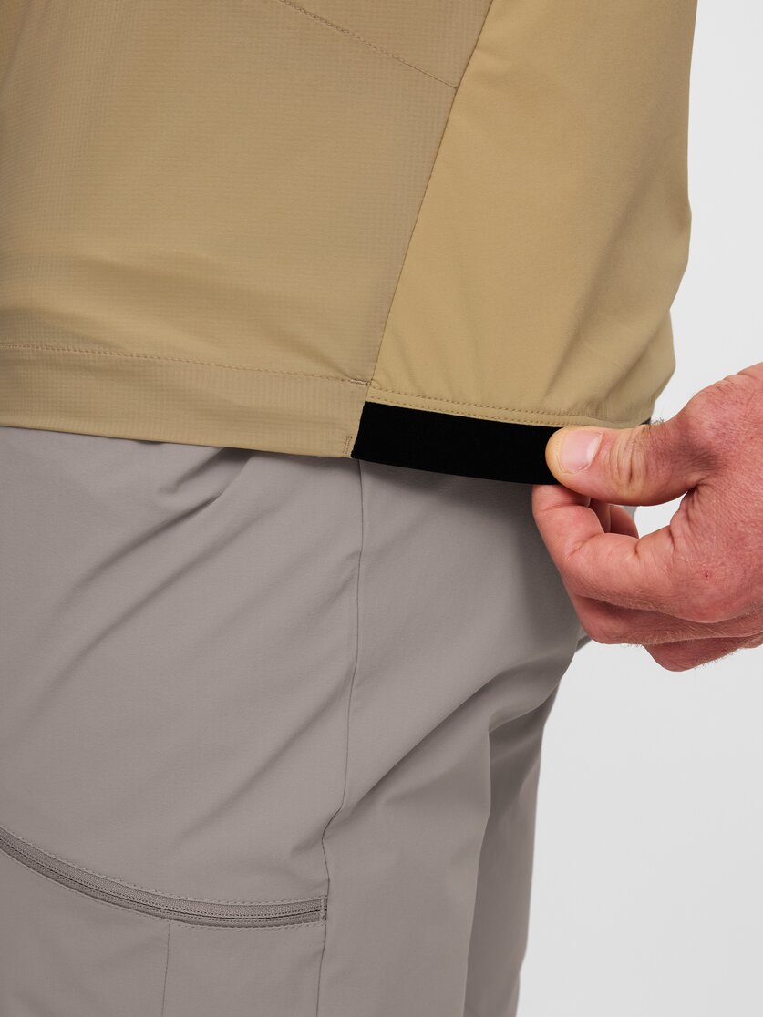 Wenn es windig wird und du beim Running, Biken oder auf schnellen Outdoor-Runden vorne Schutz brauchst, ohne gleich eine Jacke überziehen zu müssen, ist eine leichte Hybridweste ideal. Genau hier spielt die Hillclimb Hybrid Vest M ihre Stärken aus: Das elastische, hoch atmungsaktive Funktionsmaterial lässt Feuchtigkeit zügig nach außen entweichen und bleibt angenehm bewegungsfreundlich, während ein winddichter Frontbesatz aus 100% recyceltem Material den Oberkörper zuverlässig gegen Gegenwind abschirmt. Eine DWR-Ausrüstung sorgt dafür, dass leichte Feuchtigkeit abperlt, wenn das Wetter kurz umschlägt. Praktisch unterwegs: eine Eingrifftasche mit Reißverschluss sowie eine Zipptasche hinten für alles, was sicher verstaut sein soll. Für stabilen Halt ist am Saum ein Bundband mit Silikoninnenseite integriert, elastische Einfassungen am Kragen und an den Armausschnitten tragen sich angenehm und machen die Weste komfortabel in Bewegung. Ein reflektierendes Logo erhöht die Sichtbarkeit bei frühen Starts oder wenn die Runde länger dauert.