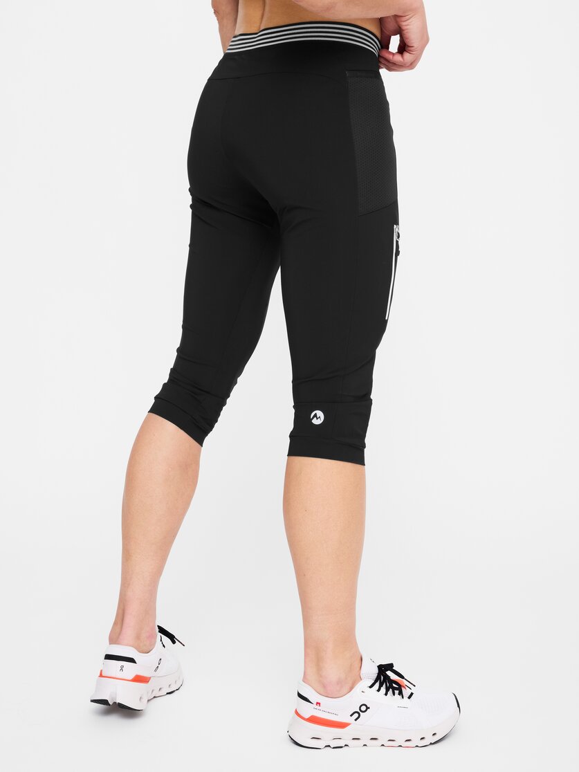 Aufs Wesentliche reduziert und zugleich voller Performance: Die PACEMAKER Capri Pants ist für (Berg-)Läuferinnen designt, die wissen, worauf es beim (Trail-)Running ankommt. Sie ist leicht, körpernah geschnitten, sehr elastisch, atmungsaktiv, feuchtigkeitsregulierend sowie wasserabweisend – natürlich PFC-frei. Weil die Martini Laufhose für Damen zu 79 % aus recyceltem Polyamid besteht, ist sie außerdem besonders umweltverträglich. Durch den leicht komprimierenden Effekt des Funktionsstoffs werden deine Muskeln beim Sporteln optimal unterstützt. Die 3/4-Länge ist im Sommer sehr angenehm, da viel frische Luft ans Bein kommt. Damit die Hose beim Laufen immer in Position bleibt, ist das Bundband innen mit Silikon beschichtet. Die kleine Reißverschlusstasche am Oberschenkel bietet Platz für das Allerwichtigste wie Schlüssel oder Kleingeld, und in den seitlichen Netztaschen findest du weitere Verstaumöglichkeiten. Designed in Austria, made in Europe.
