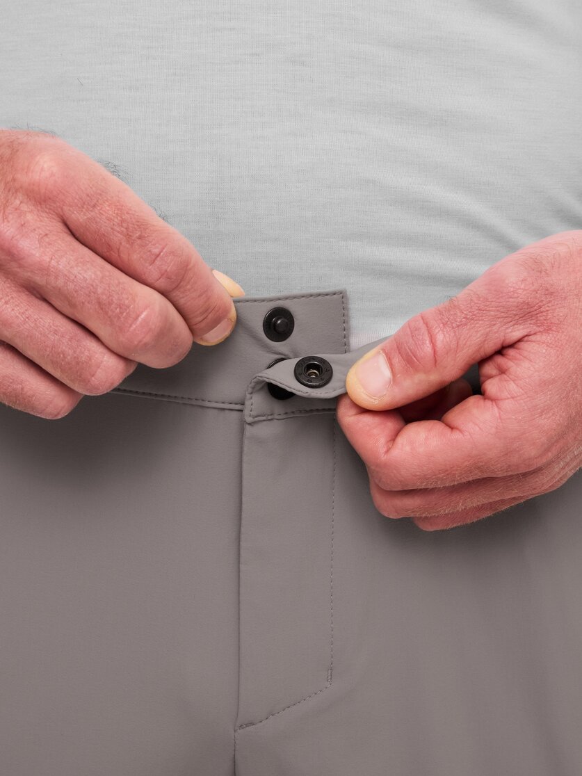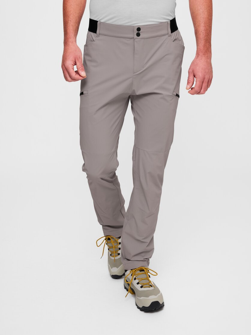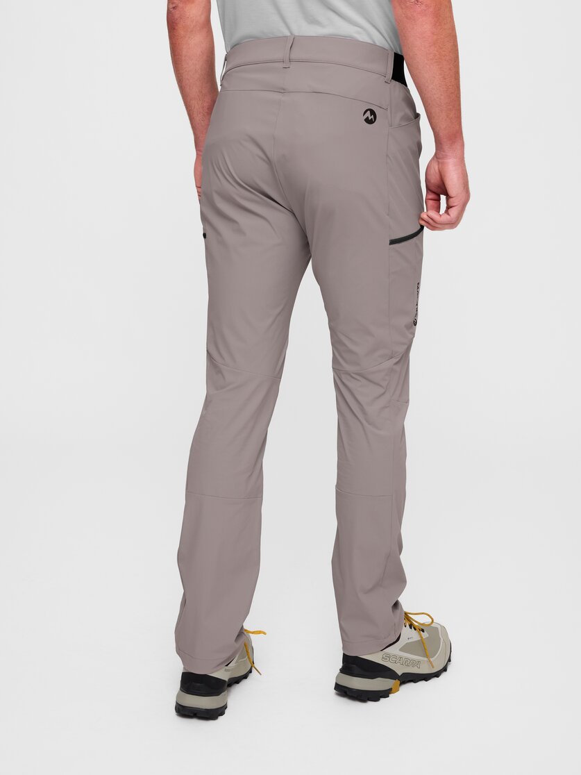 For long days on the mountain, you need trousers that move with you and remain comfortable and uncomplicated. That's exactly what the Alpmate Flow Pants M are made for: their highly stretchy material ensures maximum freedom of movement when climbing, kicking and taking long strides, while the regular fit is comfortable and doesn't get in the way on tours. The storage space is also practical when you're on the move: small items can be quickly stowed away in the two side pockets, and essentials stay securely in place in the two zipped pockets on the thighs – even when the going gets steep or you're moving fast. The waistband is elasticated, fits comfortably and is complemented by press studs and belt loops, making it suitable for touring. And to ensure that the trousers fit neatly over your shoes, the hem can be individually adjusted with a drawstring. Strong mountain and hiking trousers for anyone who is active outdoors and values comfort, function and freedom of movement.