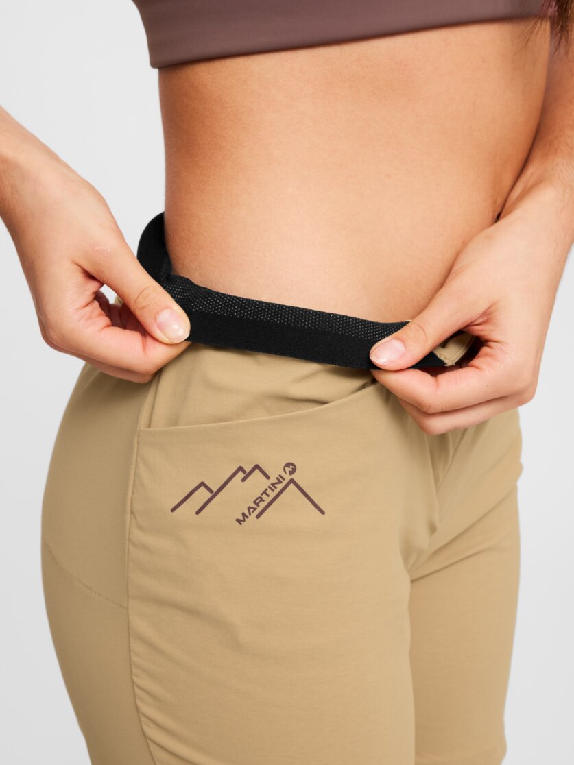 The Alpmate Summit Shorts W are perfect for summer days when you're really active outdoors and need shorts that stay comfortable even during high-intensity activities. The lightweight, high-performance fabric is highly breathable, dries quickly and helps prevent your body from overheating even during strenuous activity – perfect for long tours, steep climbs and warm days in the mountains. The DWR finish allows light rain or splashes to roll off when the weather changes while you're out and about. The two side pockets for small items and the zipped pocket at the back, where important items can be safely stowed away, are practical in use. The elasticated waistband is comfortable, is additionally stabilised by a silicone inner side and closes securely with a press stud. This means that the Alpmate Summit Shorts W remain comfortable and functional even when you're on the move – a strong outdoor shorts for anyone who likes to be active in summer.
