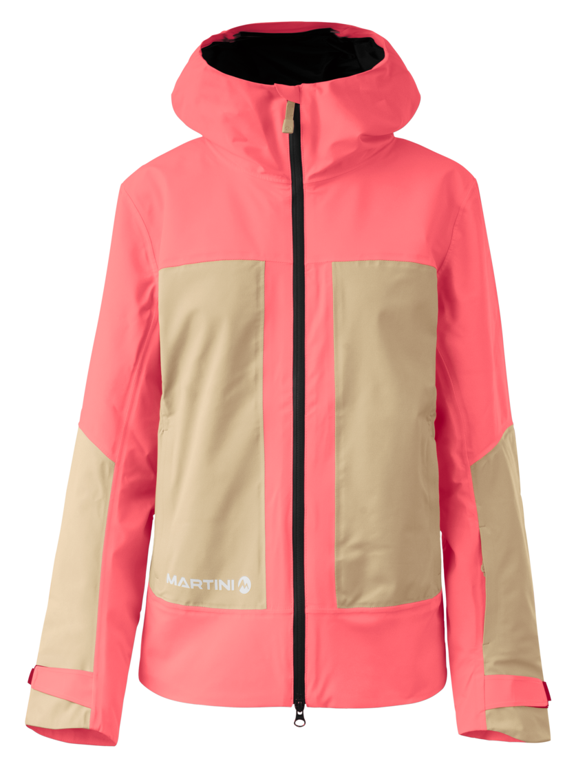 Whether skiing cross-country or in alpine terrain, the ARGON 2L Jacket W from Martini Sportswear will protect you from the elements. This technically sophisticated women’s jacket serves as a reliable outer layer and keeps you dry even in adverse conditions with its wind- and waterproof two-layer construction. With a water column of 10,000 mm and a vapour permeability of 10,000 g/m², the breathable membrane ensures effective weather protection and pleasant temperature regulation on the move. If things gets more intense, the two-way ventilation quickly lets fresh air in. Sophisticated features such as the two-way front zip, the integrated snow skirt, the helmet-compatible hood with drawstring and several practical zip pockets ensure functionality throughout. The cuffs with touch fastening and the adjustable hem ensure a superb fit. An internal loop enables you to connect the jacket to trousers – ideal for sporting challenges in any weather. Developed in Austria, produced in Europe.
