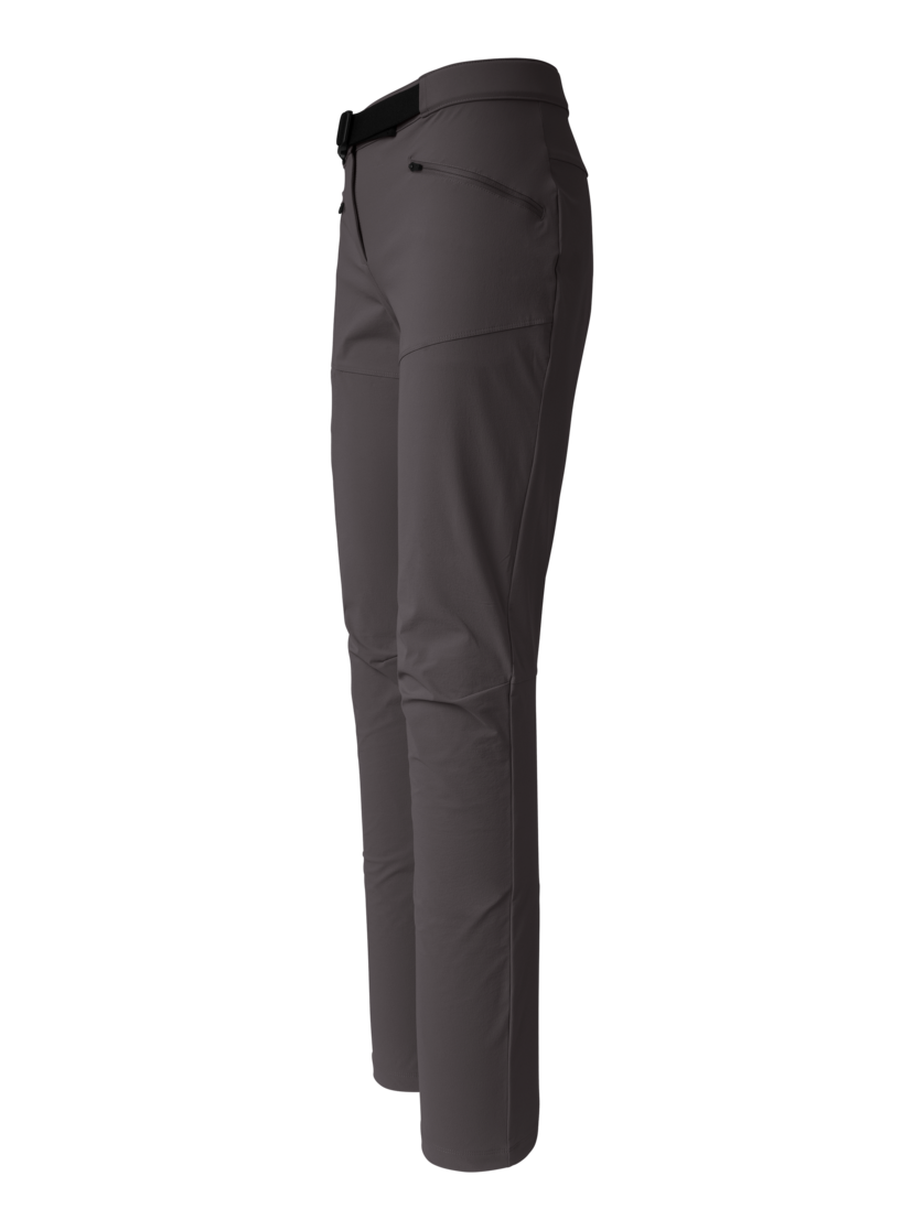 For alpine days on the rock and demanding tours, you need trousers that are robust, easy to grip and still allow you enough freedom of movement – that's exactly what the Highventure Alpine Pants W are made for. The material blend of recycled polyamide and spandex combines high durability with comfortable stretch, so you can stay focused while mountain climbing, hiking and general outdoor use. Two zipped front pockets and an additional zipped pocket on the thigh provide secure storage space, keeping important items within easy reach. The waistband stays in place thanks to a silicone-lined waistband and press stud, and the integrated belt allows for easy fine-tuning of the fit – even when changing layers on the go or with a backpack strap against your back. A DWR finish allows light moisture to bead off when the weather changes. The trousers are also available with 5 cm longer or 5 cm shorter leg lengths for a perfect fit depending on your height and footwear.
