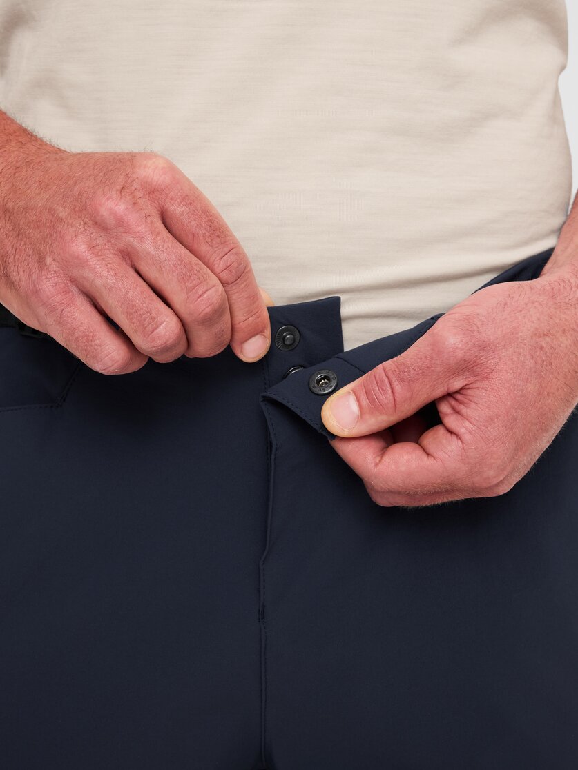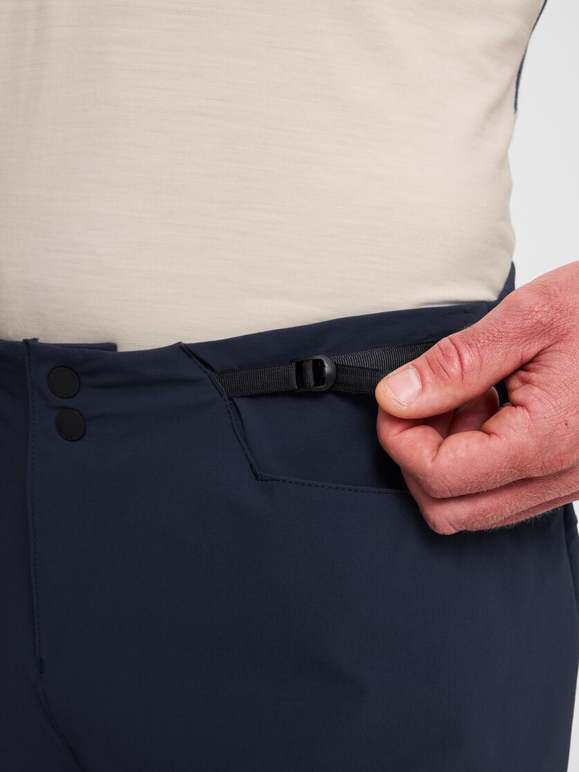 If you're out and about and need shorts that can withstand a lot of wear and tear while still allowing you to move freely, the Highventure Solid Shorts M are the perfect choice. The functional fabric, made from 90% recycled polyamide and 10% elastane, is particularly abrasion-resistant, elastic and designed for active use – just right for tours, training and anything else that gets a bit rough off-road. Thanks to the DWR finish, light moisture rolls off, so you remain flexible in changeable conditions. They also offer plenty of storage space: two open side pockets provide quick access, plus there is a side zip pocket and a rear zip pocket for anything that needs to be stored securely. The waistband fastens with press studs and can be easily adjusted for a comfortable fit even when you're on the move.