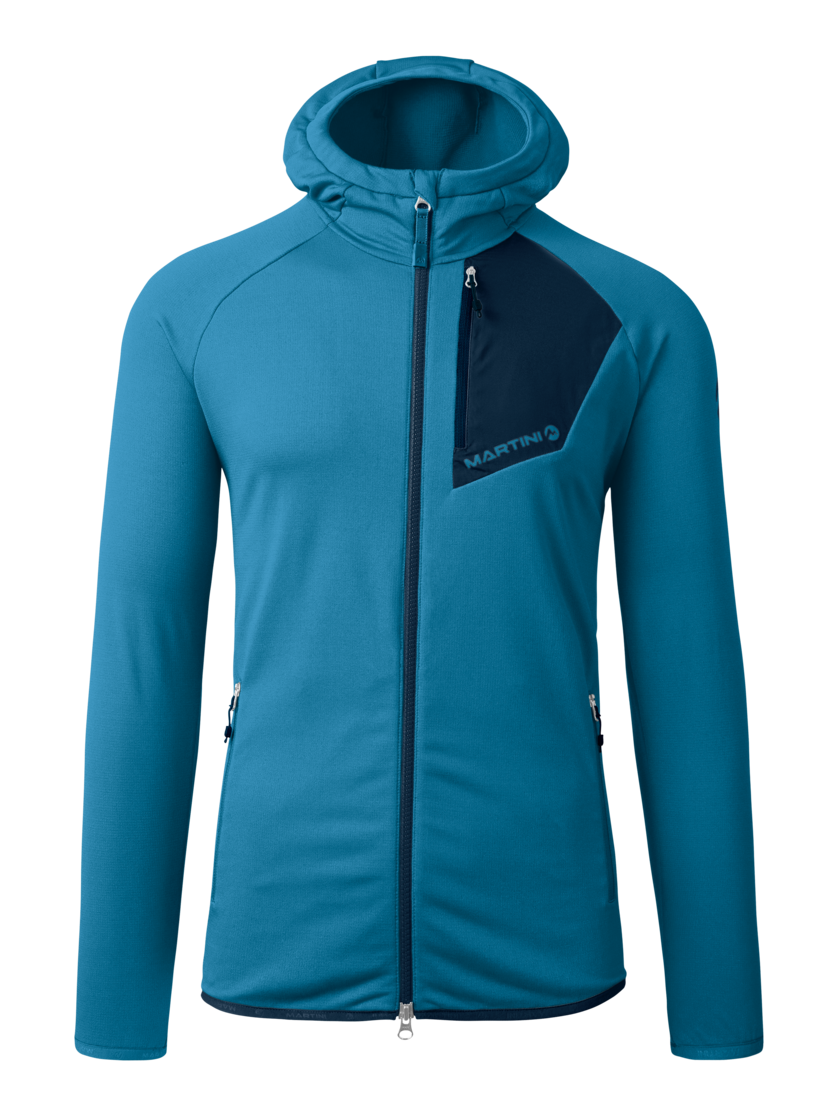 La Martini HIGHVENTURE Midlayer Jacker se doit de faire partie de ton vestiaire outdoor tout au long de l'année. Cette veste softshell multifonctionnelle à la coupe sportive est fabriquée dans une matière hautement respirante qui régule l'humidité et te garde agréablement au chaud et au sec de l'intérieur pendant les activités qui font transpirer. Sa structure spéciale en nid d'abeille à l'intérieur du tissu permet à l'air de bien circuler et d'évacuer rapidement l'humidité du corps vers l'extérieur. Les jours plus frais, la veste isole parfaitement et, grâce à son extensibilité, elle accompagne tous tes mouvements. Et comme elle est composée à 57 % de polyester recyclé, elle constitue un choix particulièrement durable. Des bordures élastiques aux poignets et à l'ourlet ainsi qu’une bande élastique à la capuche assurent une tenue ajustée et confortable. Les caractéristiques fonctionnelles comprennent également une fermeture frontale pratique à double sens, une poche poitrine et deux poches latérales zippées. Par respect pour l'environnement, le HIGHVENTURE de Martini Sportswear est fabriqué en UE.