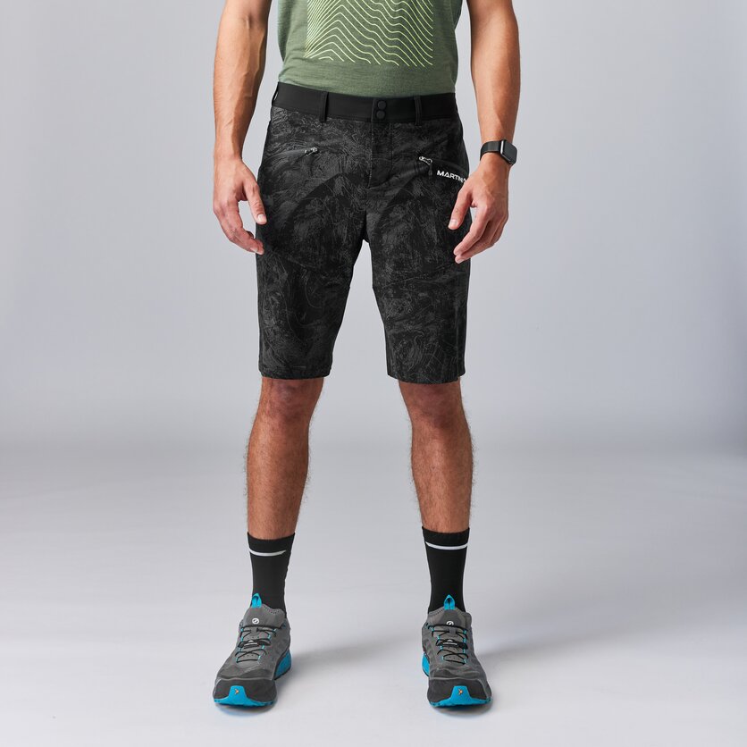 Quand on aime parcourir les montagnes à pied et à vélo, il est préférable de porter des vêtements qui eux aussi sont à l'aise dans les deux mondes. Avec sa coupe décontractée, le Hike'n'Bike TREKTECH Shorts de Martini Sportswear en fait partie, car il est à la fois un pantalon de randonnée et un pantalon de vélo. Si tu attaches le FLOWTRAIL Clip In Short M rembourré, disponible séparément, aux sangles intérieures du short, tu es parfaitement équipé pour les trails et les descentes caillouteuses. Sans le sous-short, le TREKTECH Shorts est simplement un short de sport léger et multifonctionnel avec des jambes un peu plus longues, qui t'accompagne dans tous les plaisirs de la nature. Son tissu extérieur durable en polyamide recyclé à 79 % est léger, respirant et très élastique, ce qui te laisse une totale liberté de mouvement lors de tes activités. La taille élastique avec boutons-pression et passants pour ceinture offre également un grand confort et s'adapte parfaitement à ton corps. Les deux poches zippées à l'avant et les deux poches plaquées à l'arrière te permettent de ranger tout ce que tu veux avoir à portée de main. Born in Austria, made in Europe.