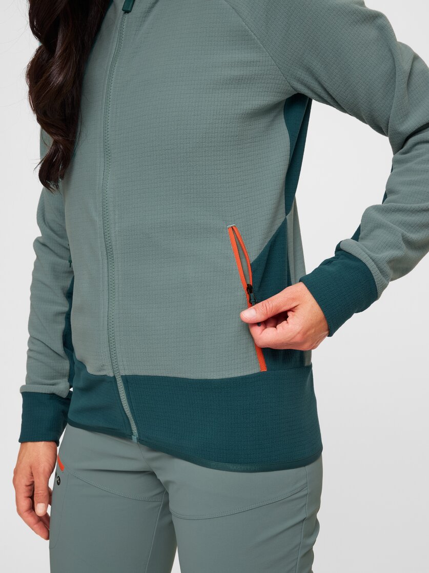 Se hai bisogno di uno strato performante da indossare sopra quando fa più freddo, la giacca Highventure ML Hooded Jacket W è un'ottima scelta. Il materiale ad alte prestazioni favorisce un clima corporeo piacevole durante il movimento ed è perfetto per escursioni, gite in montagna o corsa, soprattutto nella mezza stagione, quando la temperatura e il vento cambiano rapidamente. Il cappuccio offre una protezione extra e il moderno look color block aggiunge un tocco sportivo che convince anche lontano dai sentieri. Due tasche con cerniera consentono di riporre in modo sicuro piccoli oggetti importanti, mentre i passanti per i pollici assicurano che le maniche non scivolino anche durante i movimenti dinamici. I bordi elastici sul cappuccio e sull'orlo conferiscono alla giacca una comoda chiusura e aumentano il fattore di comfort quando fuori fa più fresco.