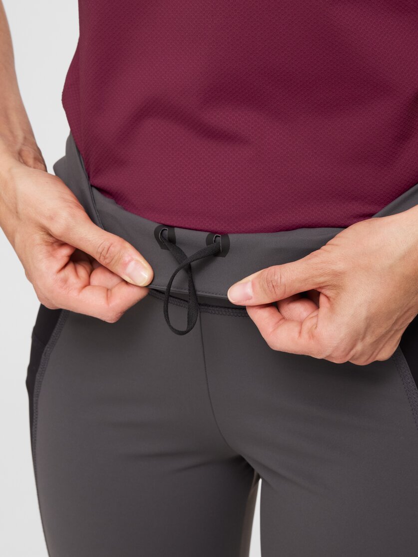 Chi ama praticare sport all'aria aperta o sul tappetino con indumenti aderenti troverà qui dei leggings che combinano in modo intelligente comfort e funzionalità. I leggings Highventure Tights W sono realizzati con due materiali diversi: il materiale principale è opaco, molto elastico e dotato di UPF 50+, ideale per le giornate di sole all'aperto. Gli inserti laterali favoriscono ulteriormente la libertà di movimento e accompagnano senza problemi ogni posa, ogni passo e ogni percorso. La morbida cintura a doppio strato è comoda e stabile, senza stringere. A ciò si aggiunge uno spazio di stivaggio ben studiato: una tasca laterale con patta, una tasca con cerniera e una piccola tasca interna per gli oggetti piccoli che devono essere riposti in modo sicuro. Un pantalone versatile per lo yoga e tutte le attività all'aperto in cui una vestibilità aderente è semplicemente la soluzione migliore.