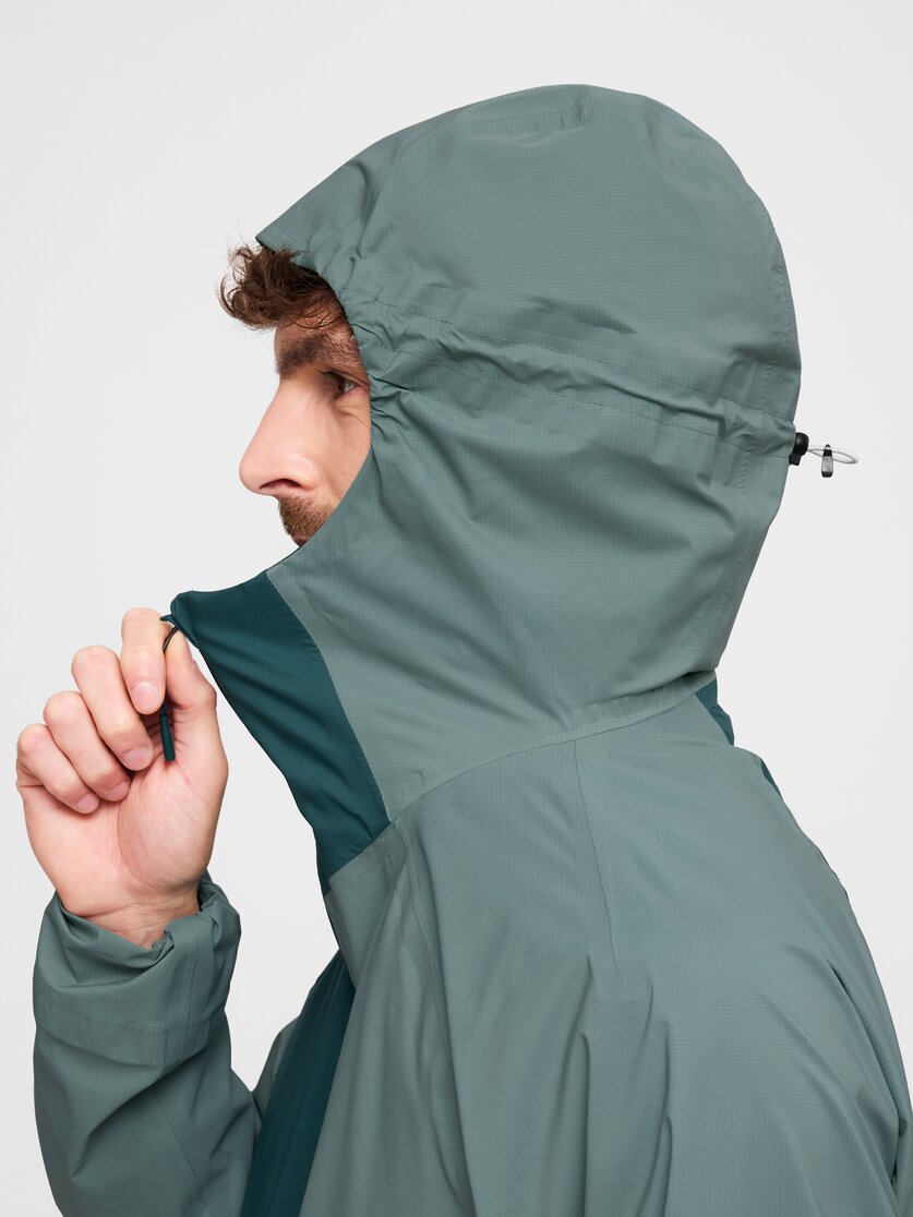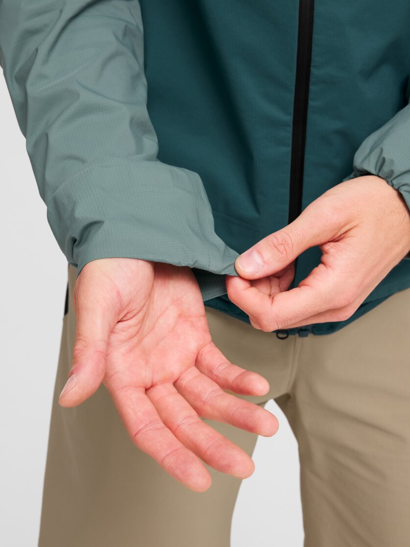 Piogge improvvise, vento in cresta o passaggi freddi e umidi possono essere affrontati nel modo più rilassato con un hardshell che garantisce impermeabilità e comfort: la Hillclimb HS Hooded Jacket M è una giacca estremamente sottile a 2,5 strati con cuciture saldate, completamente antivento e impermeabile, ma allo stesso tempo traspirante (MVTR 20.000 g/m²) e con una colonna d'acqua di 20.000 mm, anche in caso di pioggia persistente. Per garantire la massima praticità durante gli spostamenti, è progettata per occupare uno spazio minimo e può essere riposta rapidamente fino al momento dell'uso. La cerniera frontale a doppio cursore offre flessibilità nei movimenti e in caso di sbalzi di temperatura, le due tasche con cerniera proteggono gli oggetti essenziali e il cappuccio integrato può essere regolato tramite cordino per garantire una tenuta stabile in caso di vento. I bordi elastici sul cappuccio, sui polsini e sull'orlo garantiscono una chiusura confortevole, in modo che le correnti d'aria rimangano all'esterno, mentre il trattamento DWR fa scivolare via l'acqua e lo sporco.