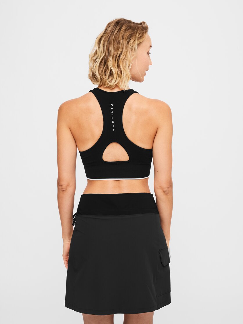 Il WANTED Bra Seamless W di Martini Sportswear è un reggiseno sportivo morbido e comodo dallo stile classico, da indossare in maniera classica infilandolo dalla testa, che offre sostegno e libertà di movimento in qualsiasi condizione outdoor. Perfetto per il trail running, le pendici alpine o la neve, la sua struttura senza cuciture laterali riduce l’attrito sulla pelle. Un’ampia fascia in maglia a costine sotto il petto garantisce un’ottima vestibilità, mentre il tessuto elasticizzato sullo scollo e il giromanica permette un adattamento perfetto al corpo. Composto per l’82% da viscosa, il tessuto tecnico elasticizzato è altamente traspirante e promuove l’espulsione dell’umidità. Non importa quanto sudi: il WANTED BRA SEAMLESS allontana efficacemente il sudore dalla pelle, mantenendoti asciutta e a tuo agio. Infine, gli spallini incrociati sulla schiena in stile racerback, insieme a un materiale meno denso nella zona della colonna vertebrale, offrono una sensazione di freschezza sulla pelle. Made for the mountains, made for you.